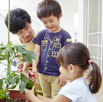 0歳児から就学前の子ども達まで、発達や年齢に合わせバラエティ豊かなカリキュラムを組んでいます。本物に触れる体験を大切にし、子ども達の五感をフルに刺激できるよう心がけています。特に幼児は、体育指導・絵画指導・リトミック・舞指導・食育指導等、専門家による様々な指導がカリキュラムの中に組み込まれており、無理なく自然に様々な事に興味関心が持てるように考えられています。